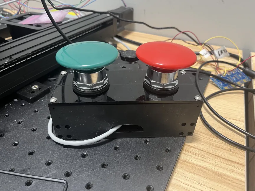 - Machine Shop Tools: To put the device together physically, I had to first use a chop saw to mark and divide the purchased aluminum 8020 into the desired lengths. Additionally, I used a belt sander to make the pieces easier to work with once they were cut by the rough chop saw.
