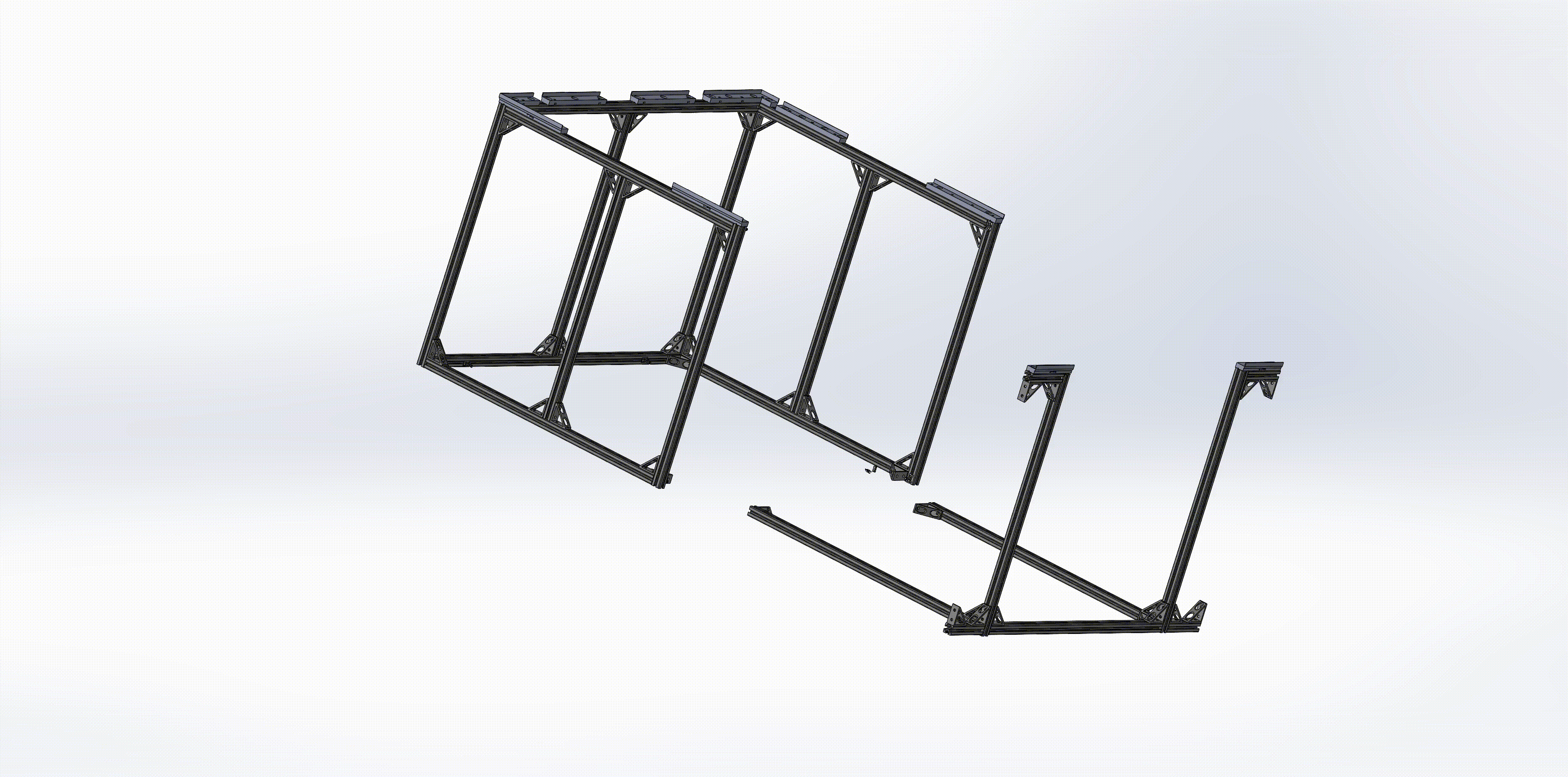 To fix this issue, I designed and manufactured a test ficture from 8020 aluminum bars, aluminum gussets, and 3D printed plastic faces which serves to hold the gantry up in the correct orientation while the test is performed.